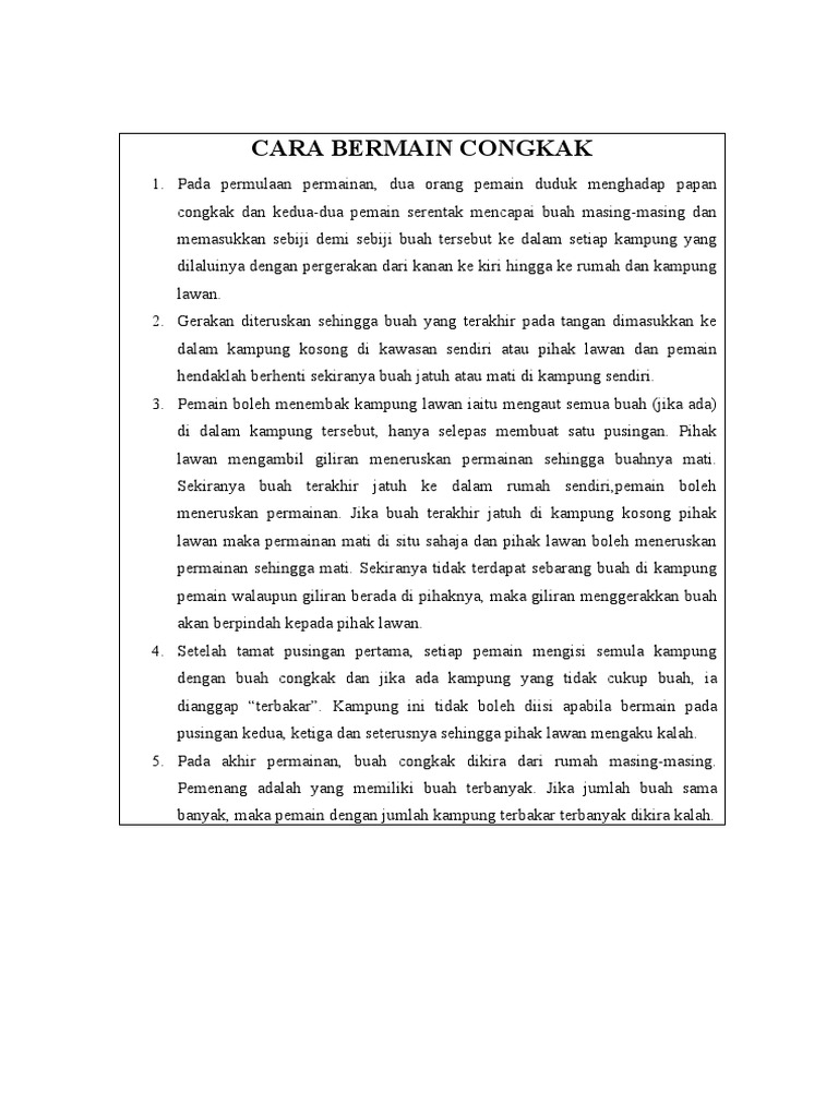 Peraturan Dalam Permainan Congkak Pdf